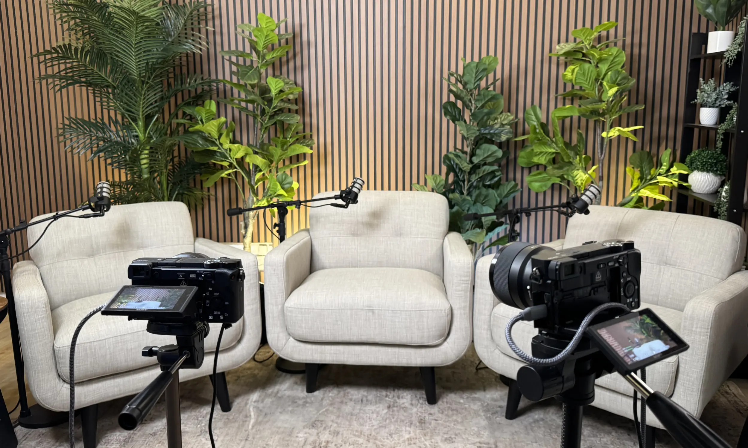 Book your session at our Austin podcast studio rental near South Lamar - a fully automated, 3-camera podcast and video recording studio with up to four microphones for effortless, professional-grade production.